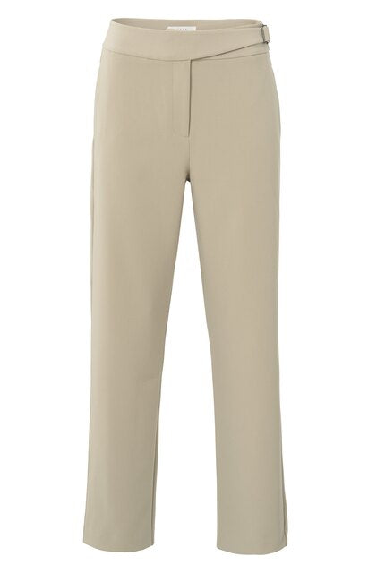 These elegant pants feature a high waist, loose fit and straight legs for a refined look. Designed with a subtle buckle detail at the waist and crafted from a soft woven fabric. The side pockets add functionality, while the sophisticated details make these trousers perfect for both casual and formal occasions. Pair them with a blouse or sweater for a complete outfit. The model is 176 cm and wears size 36.